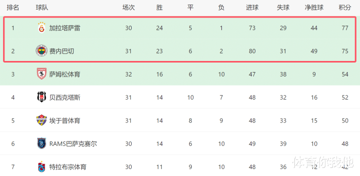 虽然目前加拉塔萨雷少赛1场,但是他们本轮将做客对阵排名第五的埃于普体育(本赛季加拉塔萨雷主场2-2爆冷和对手战平),随时可能丢分,一旦加拉塔萨雷不胜,费内巴切将是最大的受益者。